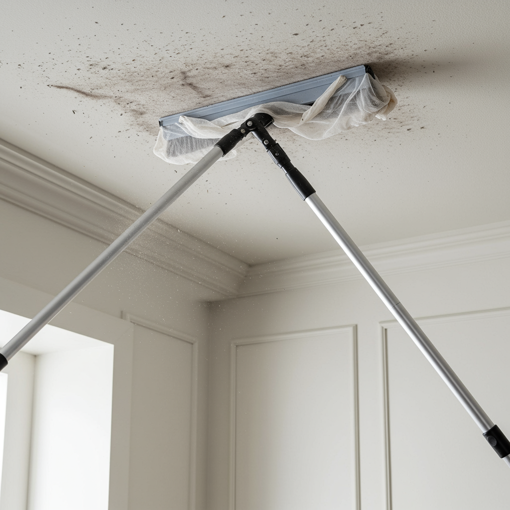4. 천장 높은 곳 먼지 스타킹으로 제거: 정전기 활용 꿀팁 ⚡
