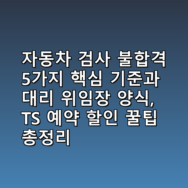하지만 걱정 마세요! 불합격 사유의 90% 이상은 검사 전에 운전자 스스로 간단하게 점검할 수 있는 항목들입니다. 오늘 이 글에서는 2025년 자동차 검사에서 가장 흔하게 불합격하는 5가지 핵심 기준과, 이를 한 번에 통과하기 위한 실용적인 꿀팁(TS 예약 할인, 대리 위임장)을 모두 알려드리겠습니다. 이 글을 읽고 10분만 투자하면, 검사 당일 당당하게 합격 도장을 받을 수 있을 거예요! 😊