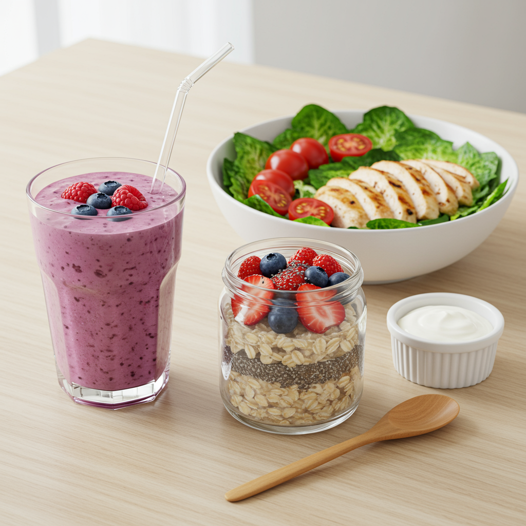 - 만드는 법: 밀폐 용기에 오트밀, 요거트, 우유, 치아씨드를 넣고 잘 섞은 후 냉장고에 밤새 넣어두세요. 아침에 꺼내 과일 토핑을 얹어 먹으면 든든하고 건강한 아침 식사가 됩니다.